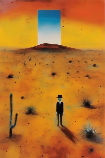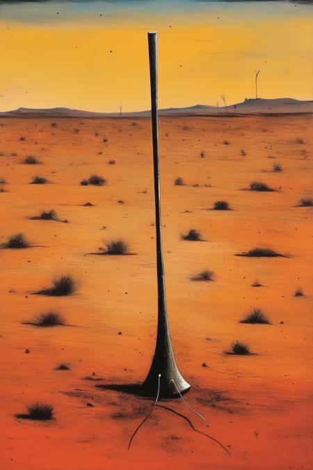 - text: "Sidney Nolan Style - In the desert, a clear footprint"